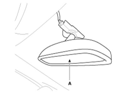 1. Disconnect the RCD room mirror connector (A) after removing the mirror wiring cover.