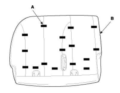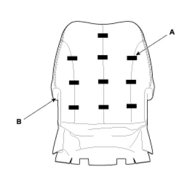 6. After removing the hog-ring clips (A) on the front of seat back remove the seat back cover (B).