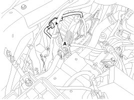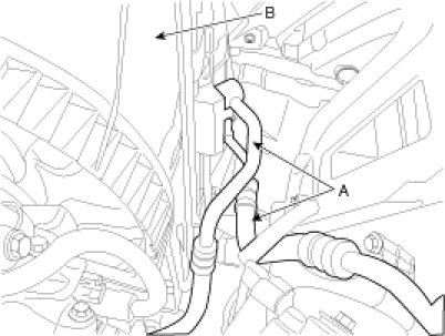 12. Disconnect the A/C pressure pipe (A) from the radiator assembly (B).
