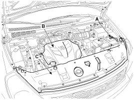 3. Remove the radiator grille upper cover (C).