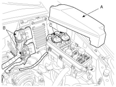 (1) Remove the engine room fuse and relay box cover (A).
