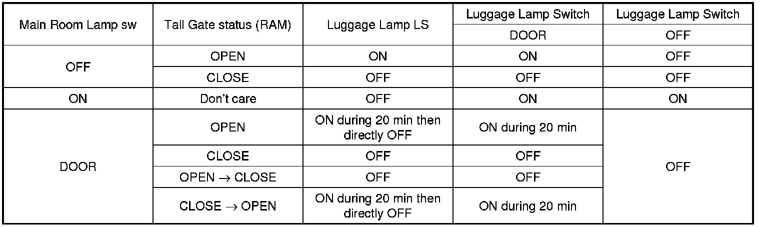 L. For the room lamps, when the 20m timer is running and any of the side doors is opened the timer is restarted.