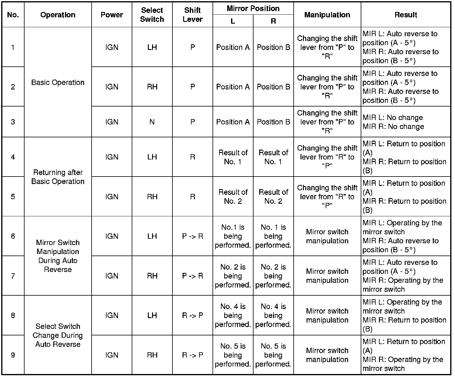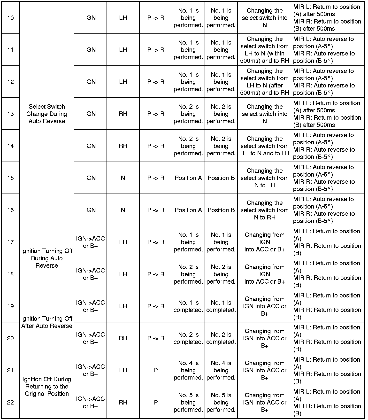 This function is implemented by the DDM. This function turns the 2 external reverse mirrors down when gear box in reverse position.