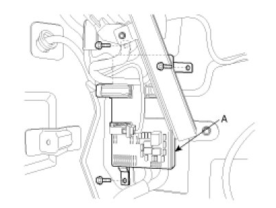 3. Remove the keyless antenna cable and IPM(Instrument Panel Module)(A) after loosening 3 nuts and disconnecting 5 connectors.