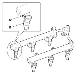7. Remove the fixing clip (A), and then separate the injector (B) from the delivery pipe.