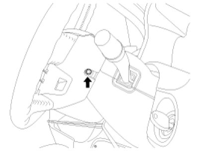 10. Remove the steering column assembly by loosening the steering column mounting bolts and nut (A).