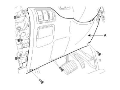 5. Loosen the screws, and then remove the lower crash pad (A).