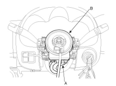 2. Remove the key lock assembly (A) from the steering column (B) by loosing special bolts.