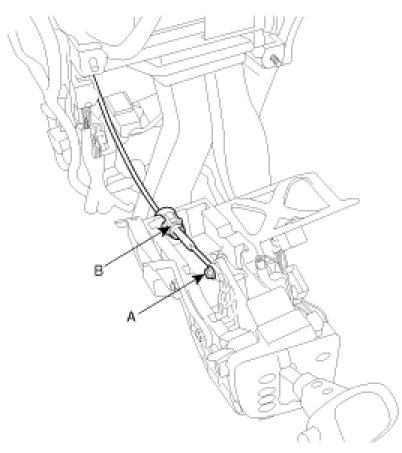 5. Remove the shift cable mounting nut (A) and cap (B).