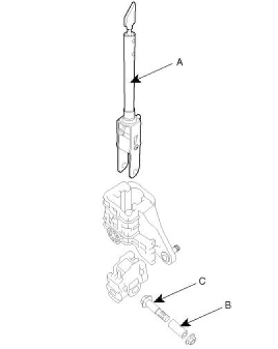 6. Remove the lever (A) and tube (B) by removing the bolt (C).