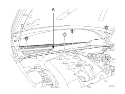 2. Remove the weather strip and the cowl top cover (A) after removing 4 fasteners.