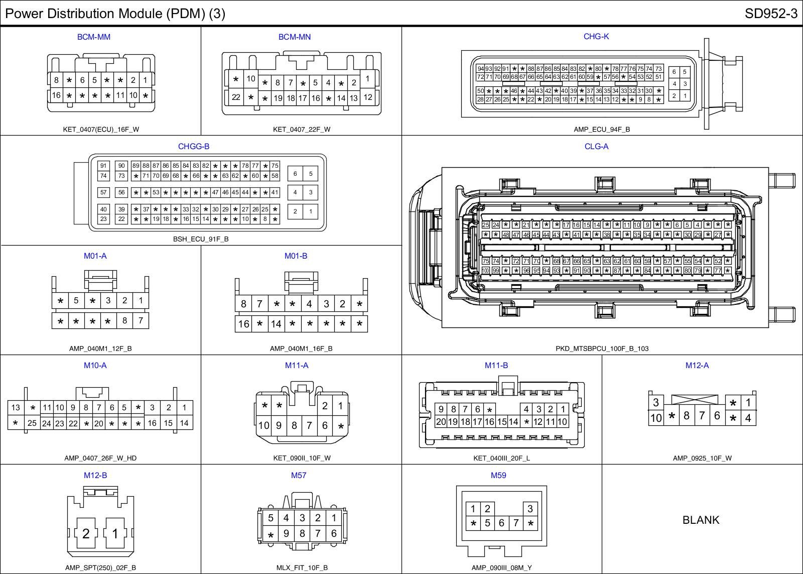 Power Distribution Module (PDM) (3) Connector Pin Outs: