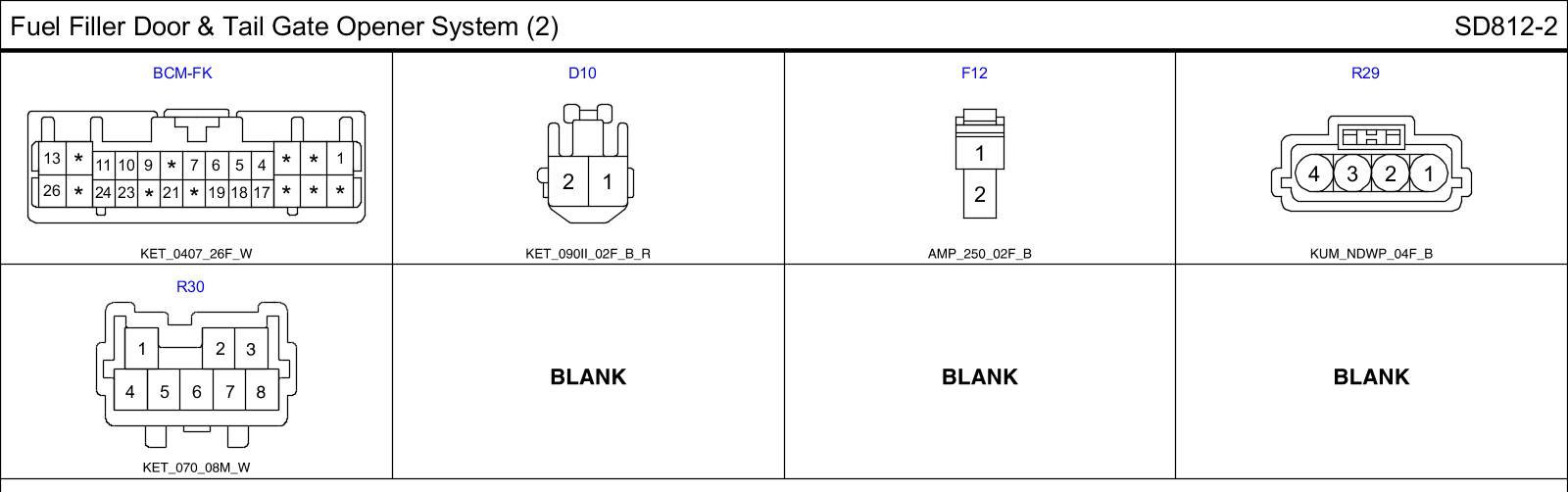 Fuel Filler Door & Tail Gate Opener System (2) Connector Pin Outs: