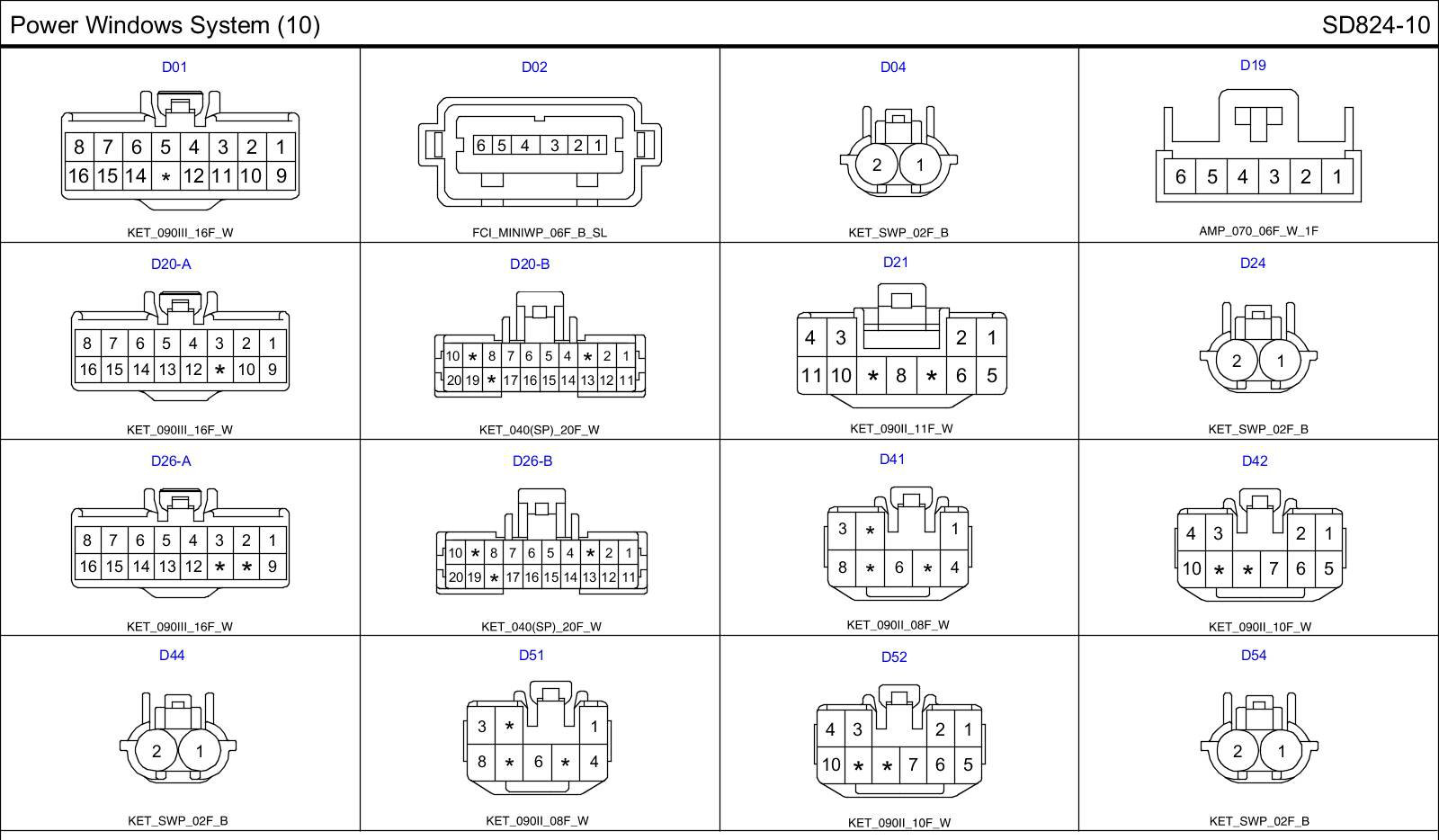 Power Window System (10) Connector Pin Outs: