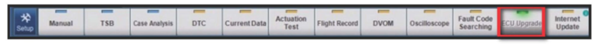 6. Once back at the GDS Main Screen, select ECU Upgrade from the bottom right-hand corner. Next select Auto Mode, and then Engine. Perform the PCM upgrade in accordance with normal GDS tool PCM upgrade procedures.