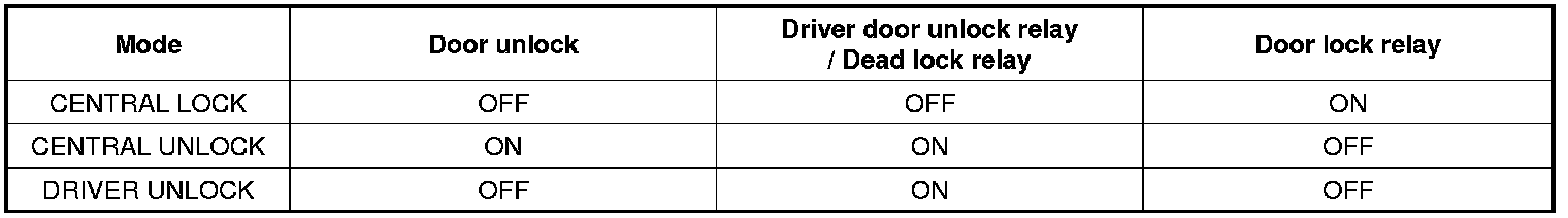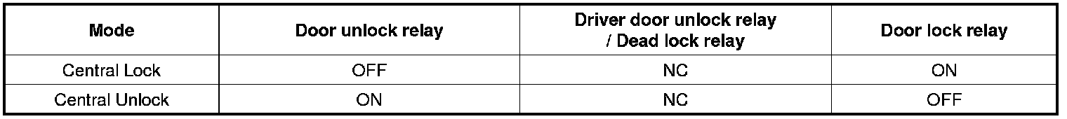 (9) If the condition of Central lock output and Central unlock output is simultaneously developed, lock output is prior to unlock output.