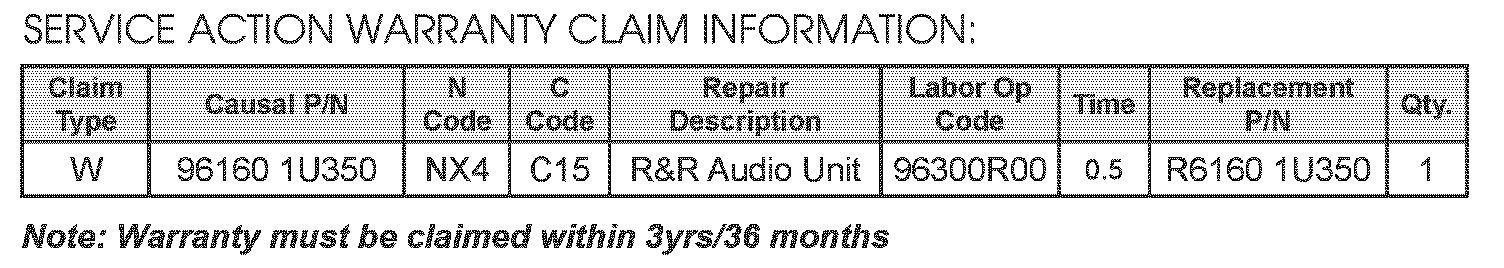 Test the vehicle for this condition when the vehicle has been in a high ambient temperature environment, such as exposed to bright sunlight. Note that the symptoms may vanish once the vehicle has been in a controlled climate environment such as a repair garage. After verifying the complaint and confirming the VIN falls within the production date range outlined below replacement of the Premium UVO audio unit is necessary.