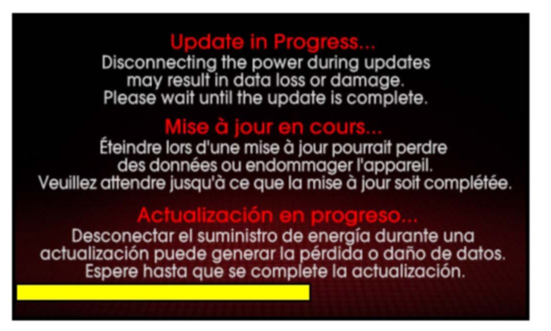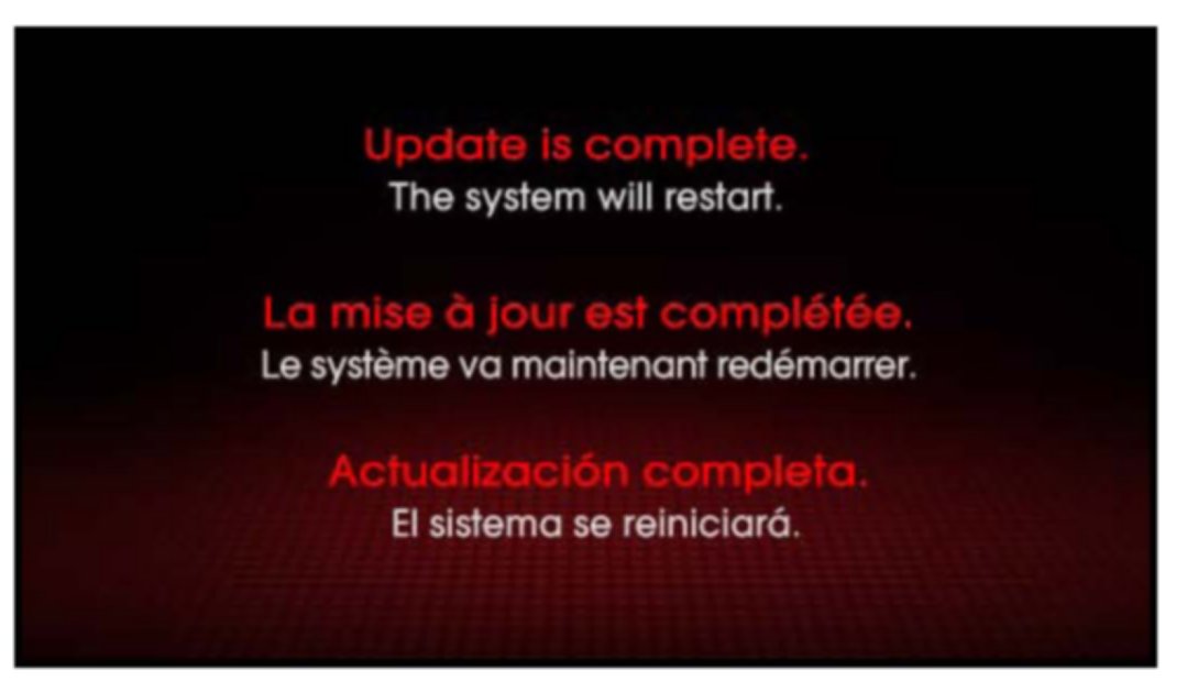 When rebooting, screen will go dark for approximately 20 to 40 seconds, this is normal. System will reboot 2 times to perform the update.