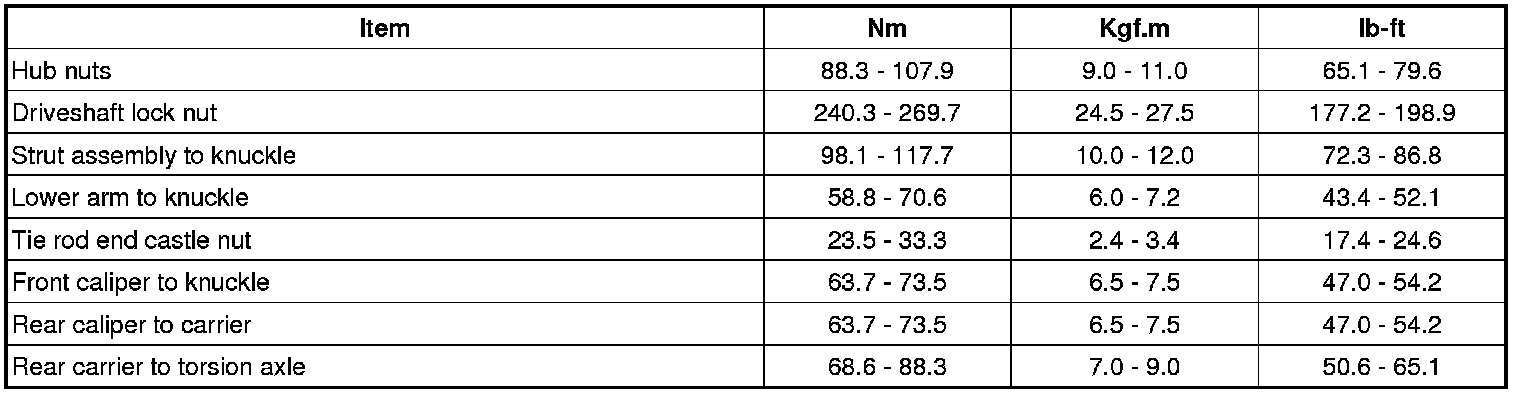 SpecificationTightening TorqueCAUTION:Replace self-locking nuts with new ones after removal.