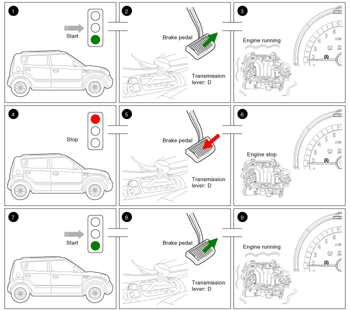 1. Engine Auto-Stop: D-range + brake pedal is pressed.