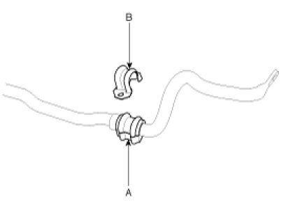 9. Remove the bushing (A) and the bracket (B) from the stabilizer bar.