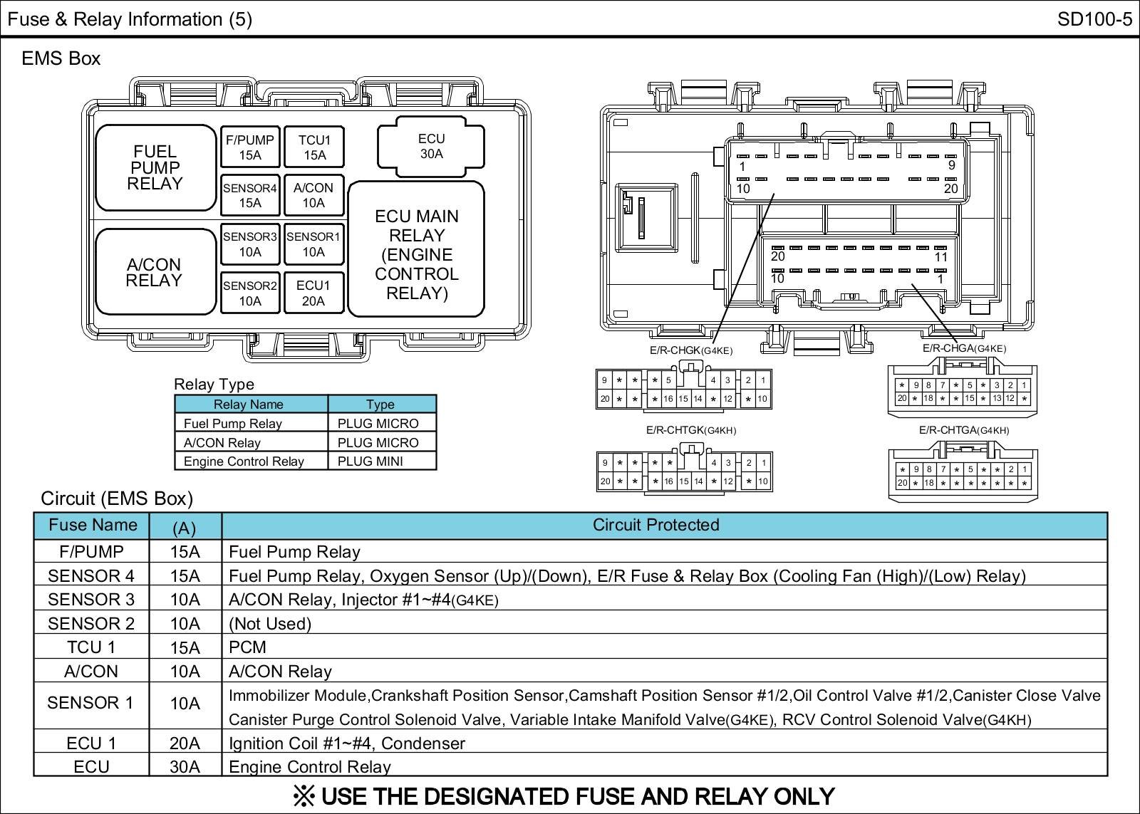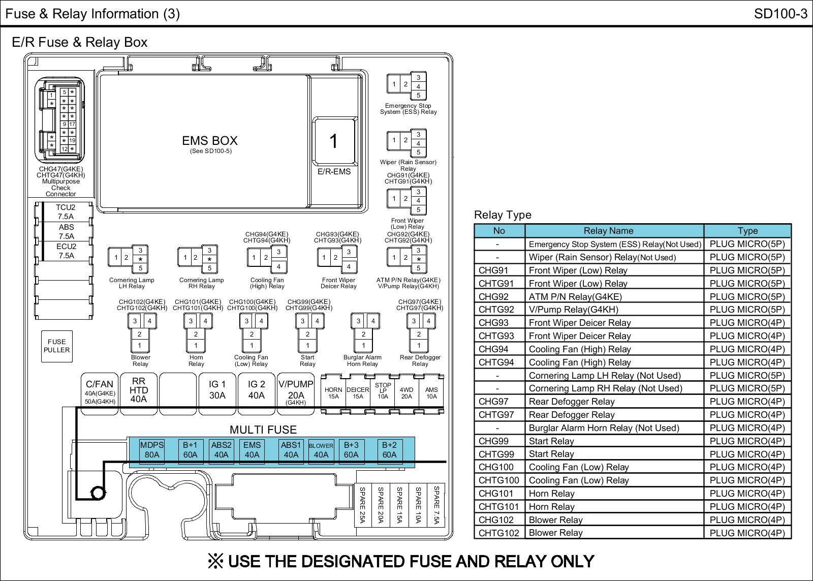 E/R Fuse & Relay Box Circuit Details: