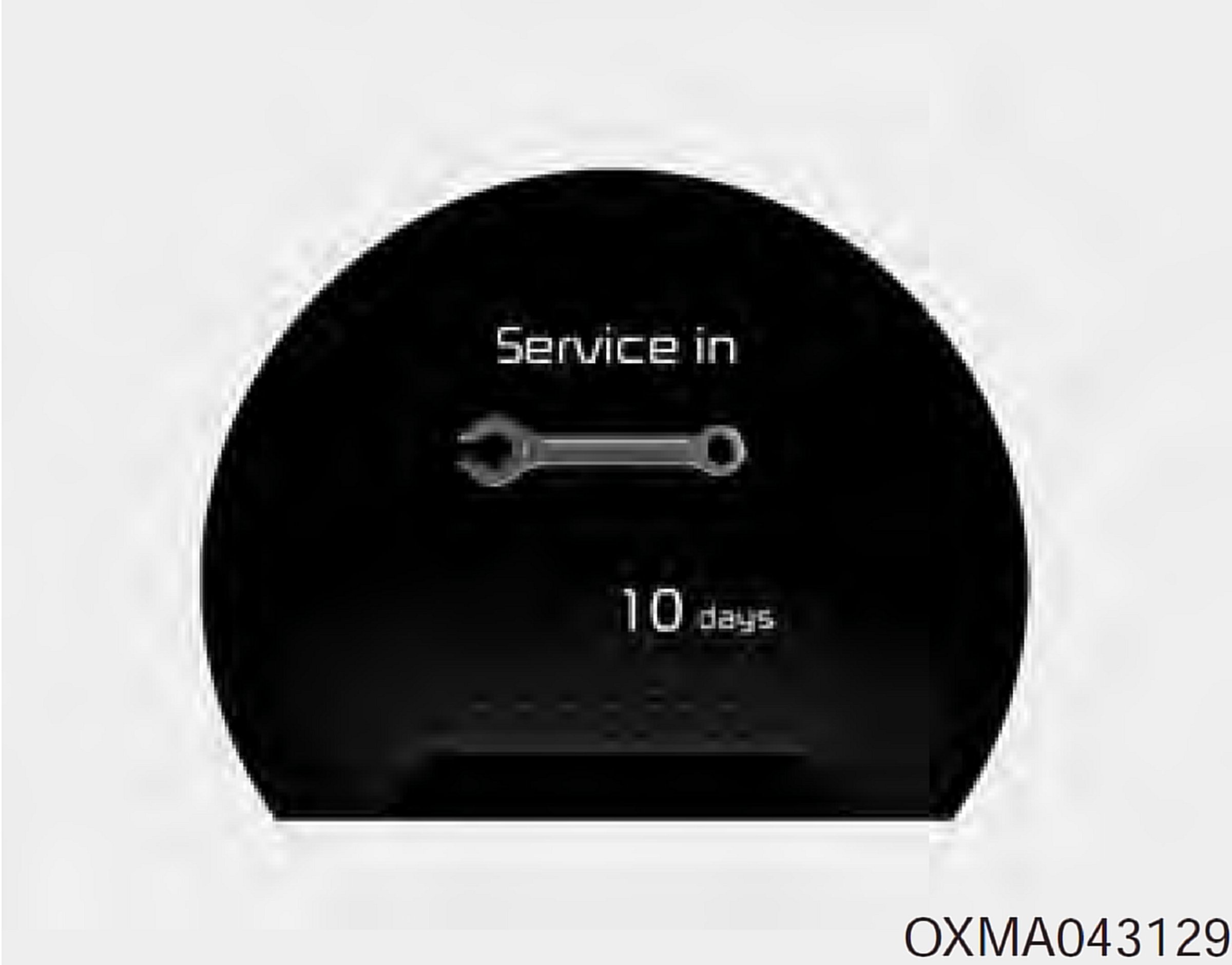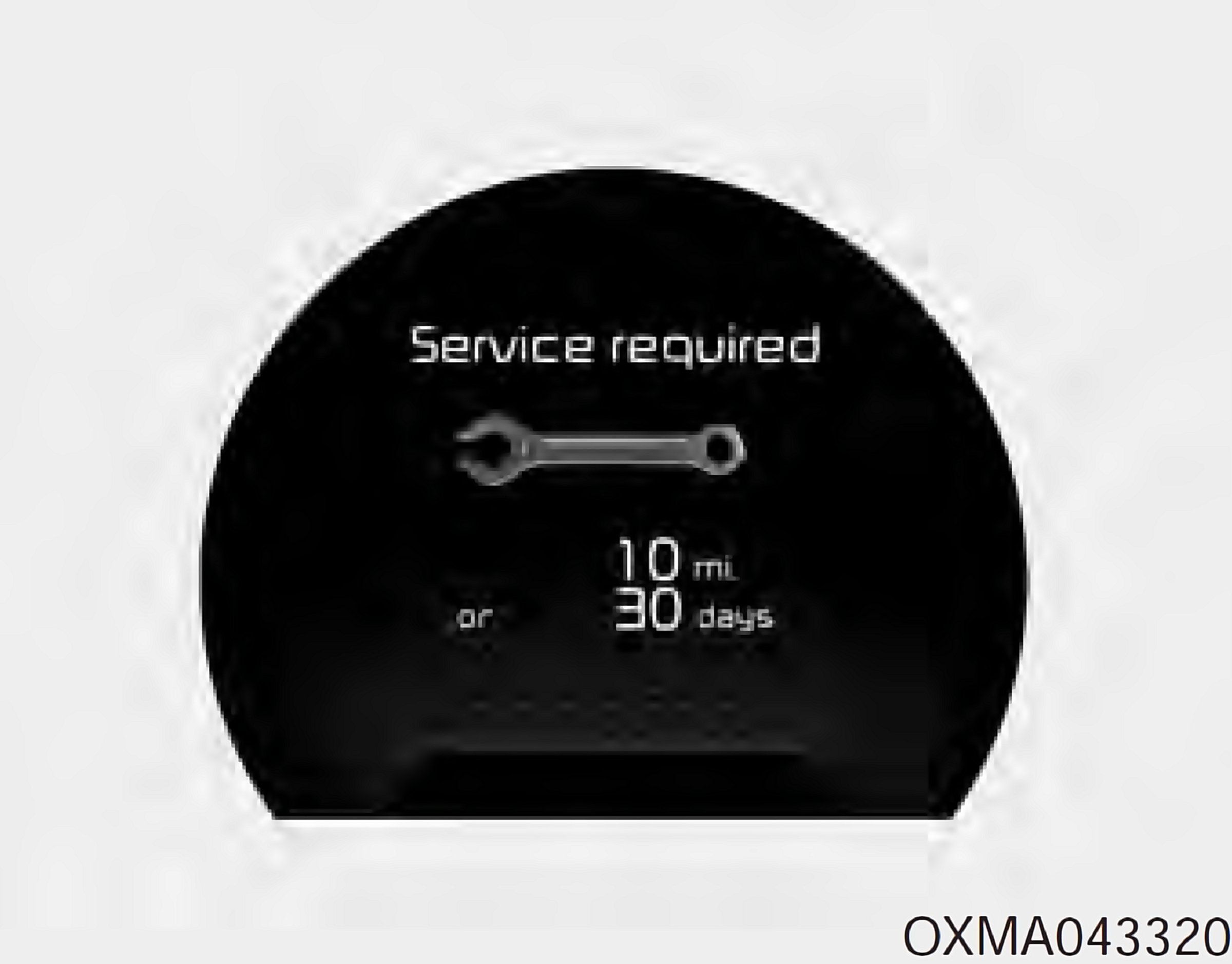 Calculates and displays when you need a scheduled maintenance service (mileage or days). If the remaining mileage or time reaches 900 mi. (1,500 km) or 30 days, a "Service in" message is displayed for several seconds each time you set the ignition switch or Engine Start/Stop Button to the ON position.