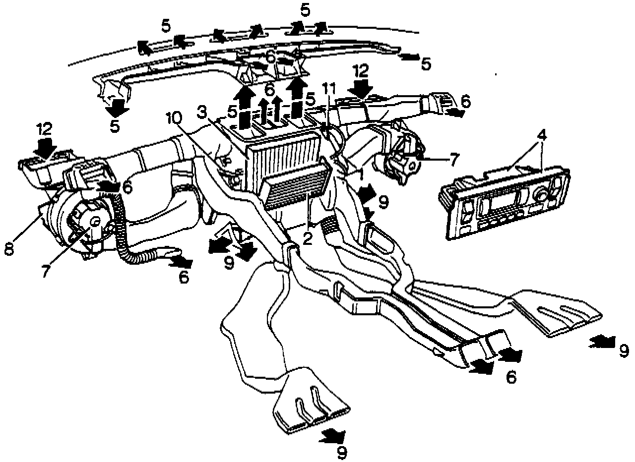 6. Air to fascia center vents, side vents, lap vent (driver only) and rear passenger