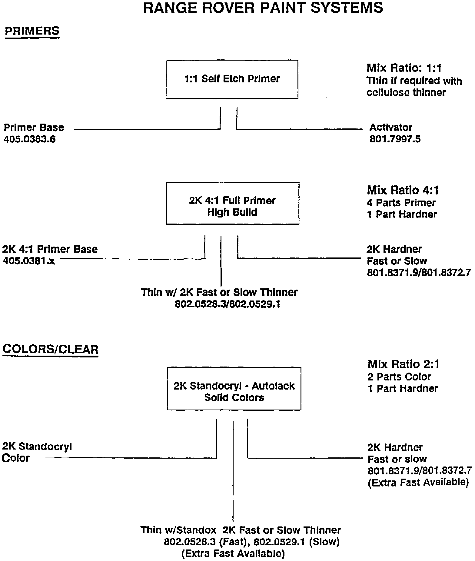 The flowchart diagrams are designed to clarify the various Range Rover paint systems.
