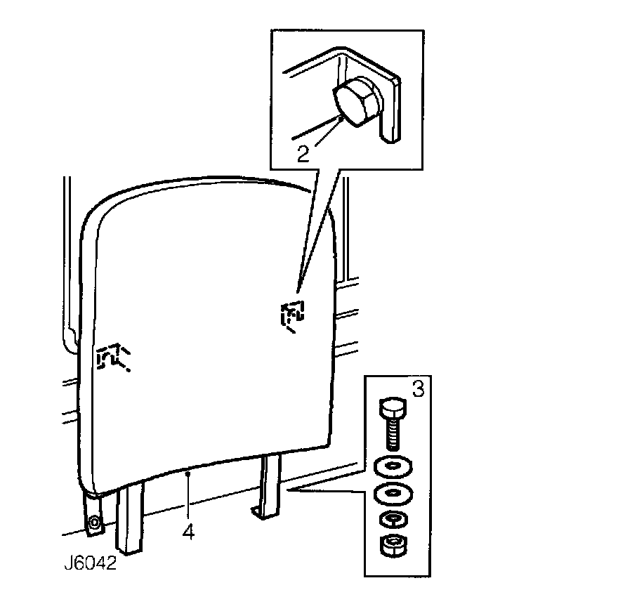 6. Secure seat squab to wheel arch, tighten bolts to 10 Nm, 7 lbf ft.