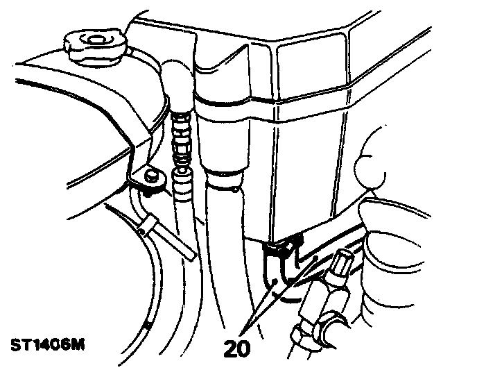 9. Release the fixings and remove the expansion tank to provide access to the air conditioning high and low pressure pipes.