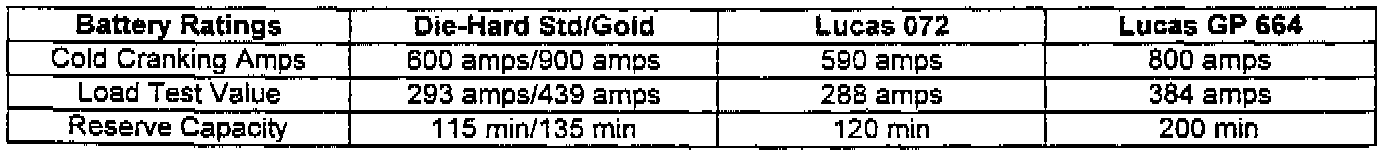 4. Refer to the chart above for the correct load value of the battery being tested. If the vehicle is not equipped with a Land Rover or authorized Land Rover battery, see the battery manufacturer's specifications for load test values. If load test specifications are unavailable, a good rule of thumb is to apply 48-50% of the battery's cold cranking amperage as a load test value. For example, if the battery in question is rated at 575 cold cranking amps at 0°F (usually printed on battery cover), then the battery should be load tested at 280-287 amps.