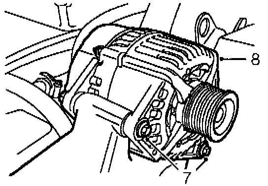 7. Remove 2 bolts securing generator to mounting bracket and collect nuts.