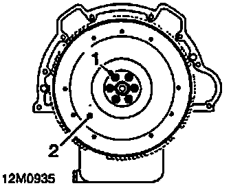 1. Restrain crankshaft and remove 6 bolts securing flywheel.