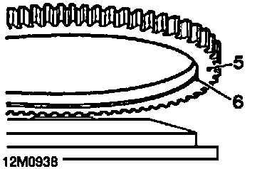 6. Locate ring gear on flywheel with chamfered inner diameter towards flywheel flange.