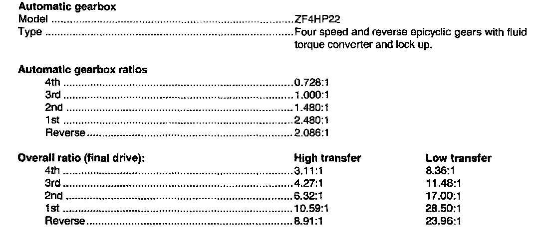 ZF 4HP22 4-spd A/T Technical Data Cont.: