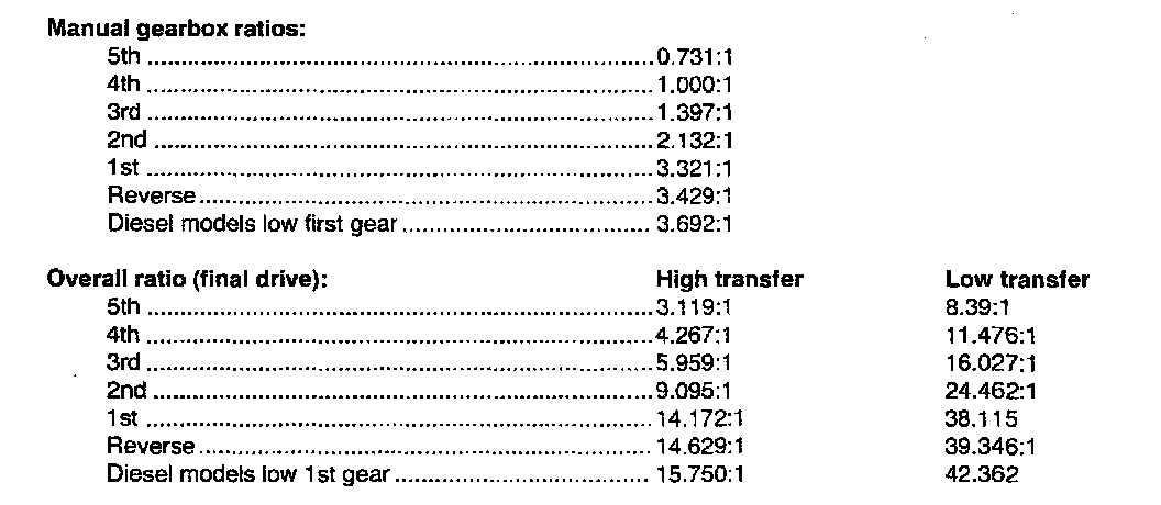 R380 5-spd M/T Technical Data: