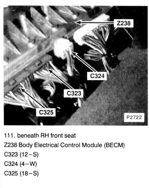 Beneath RH Front Seat On Body Electrical Control Module (BECM)