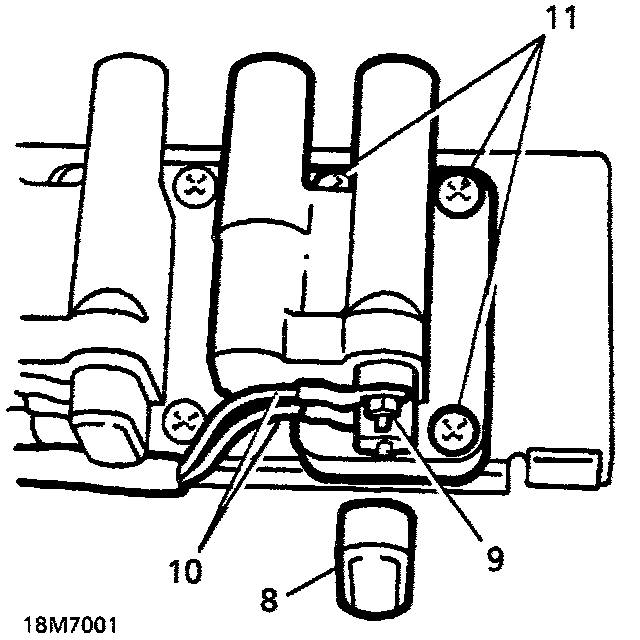 11. Remove 3 screws securing ignition coil to bracket. Remove coil.