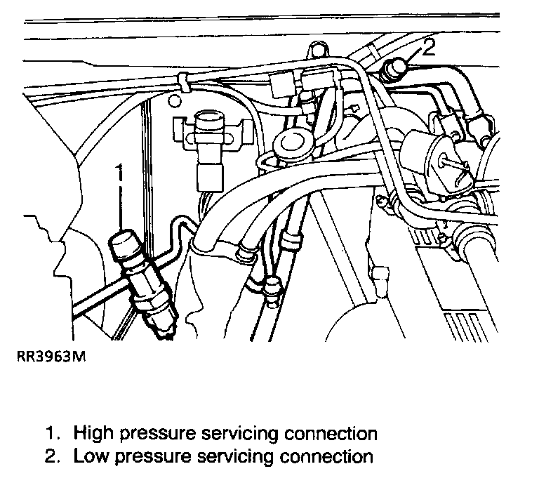WARNING: The air conditioning system is charged with a high pressure, potentially toxic refrigerant. Repairs or servicing must only be carried out by an operator familiar with both the vehicle system and the charging and testing equipment.