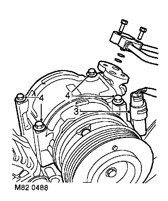 5. Remove 4 bolts securing compressor to mounting bracket.