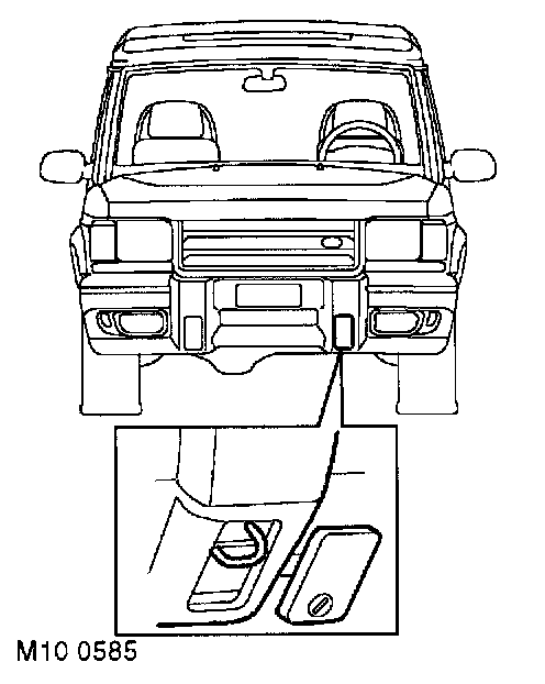 Front: A single towing eye, set behind a removable panel in the front spoiler. DO NOT use the front lashing rings for towing.