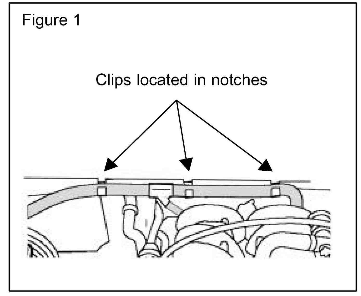 2. Refer to Figure 1. If clips are all located in the firewall notches, the right clip must be relocated as described below: