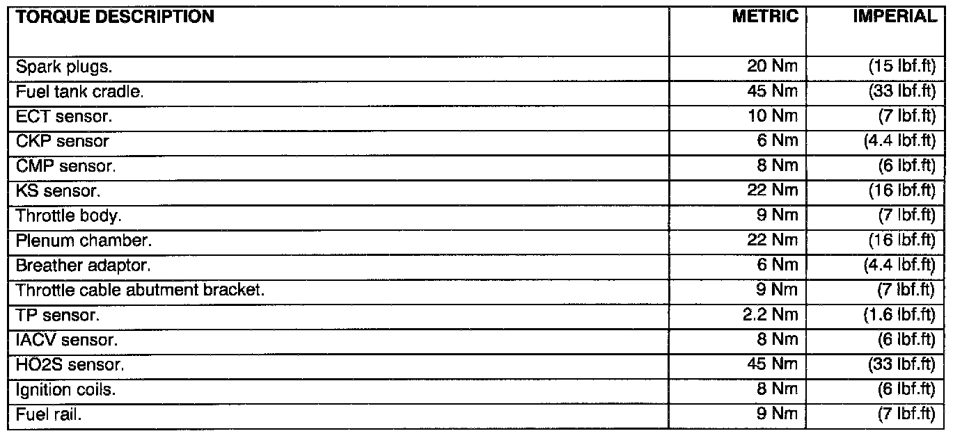 Torque Wrench Settings:
