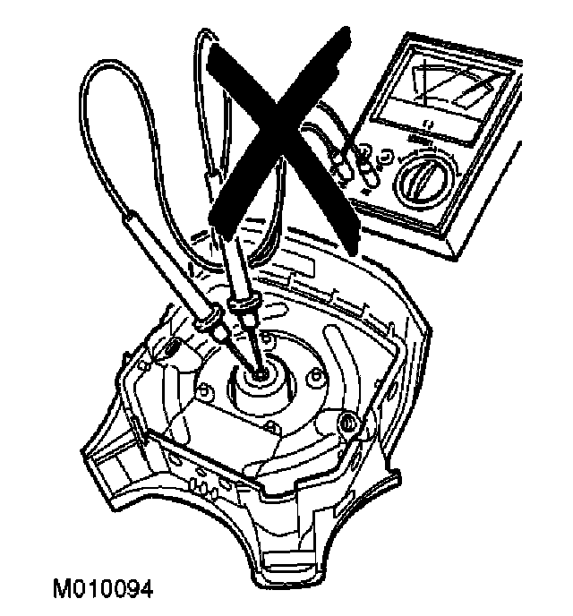 WARNING: Do not use a multimeter or other general purpose test equipment on SRS system components or accidental deployment may occur. Use only Testbook to diagnose system faults.