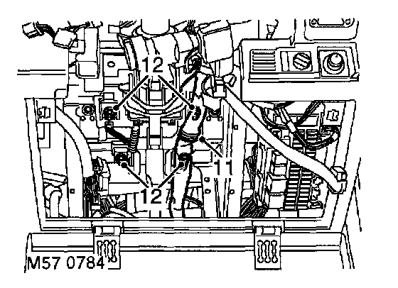 12. Remove 4 nuts securing steering column assembly to fascia rail and remove steering column assembly.