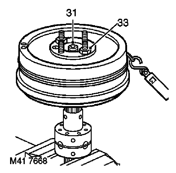 33. Fit transmission brake drum to output flange and secure the drum using 2 nuts.