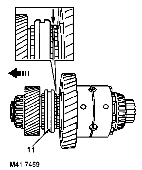 11. Using feeler gauges, determine clearance between low range gear and high/low hub: