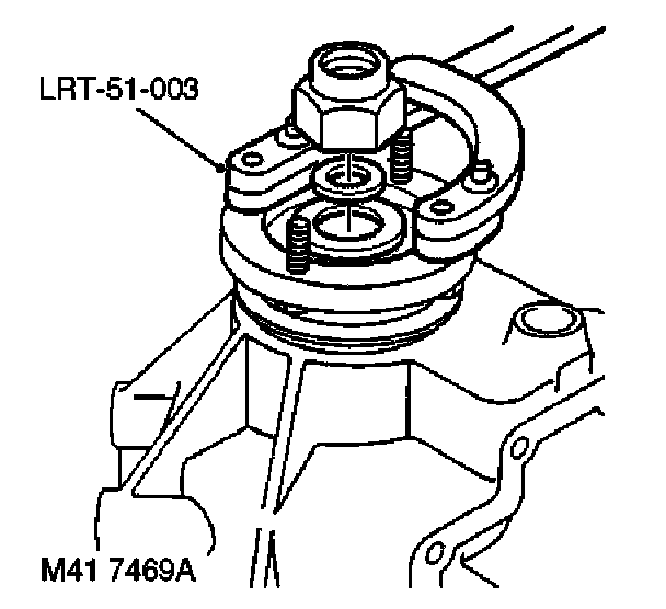 10. Using tool LRT-41-007, fit new bearing retaining nut and tighten to 72 Nm (53 lbf.ft). Do not stake nut at this stage.