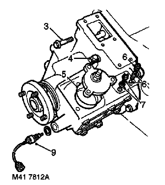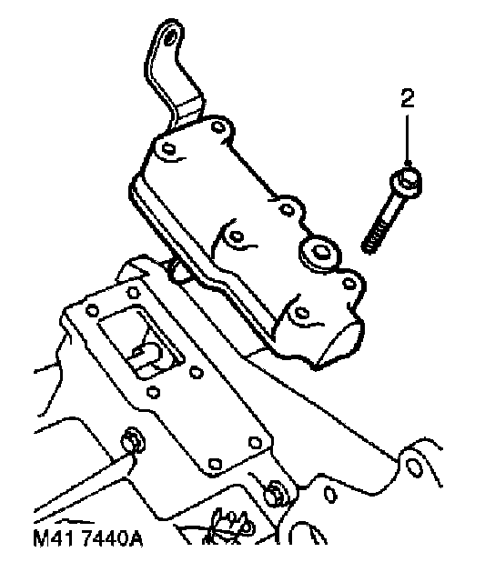 2. Remove 6 bolts securing high/low cross shaft housing to front output shaft housing and remove housing.